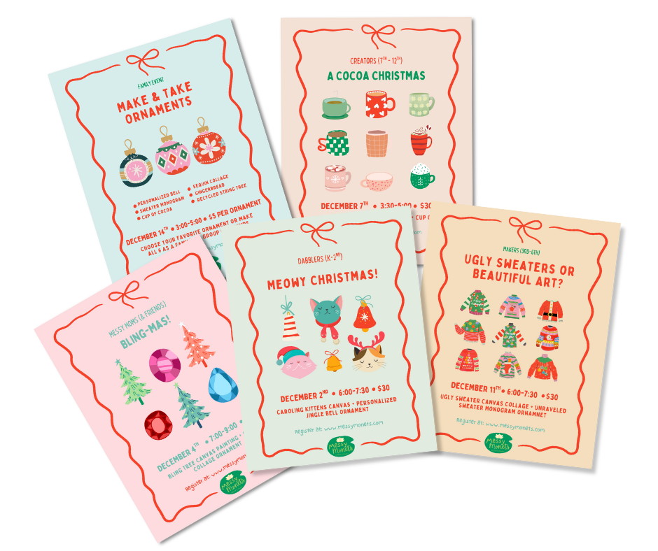 Messy Monets was founded in May of 2025 and what started as an idea for a toddler summer art camp quickly grew into a much larger, messier, full-on art studio for kids (and their grownups)!